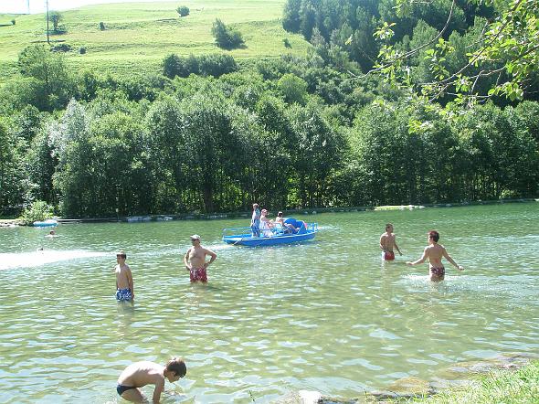 Nein. Im Sommer gibt es den Badesee. In Bivio (Ferienzentrum) ein kleines Hallenbad.